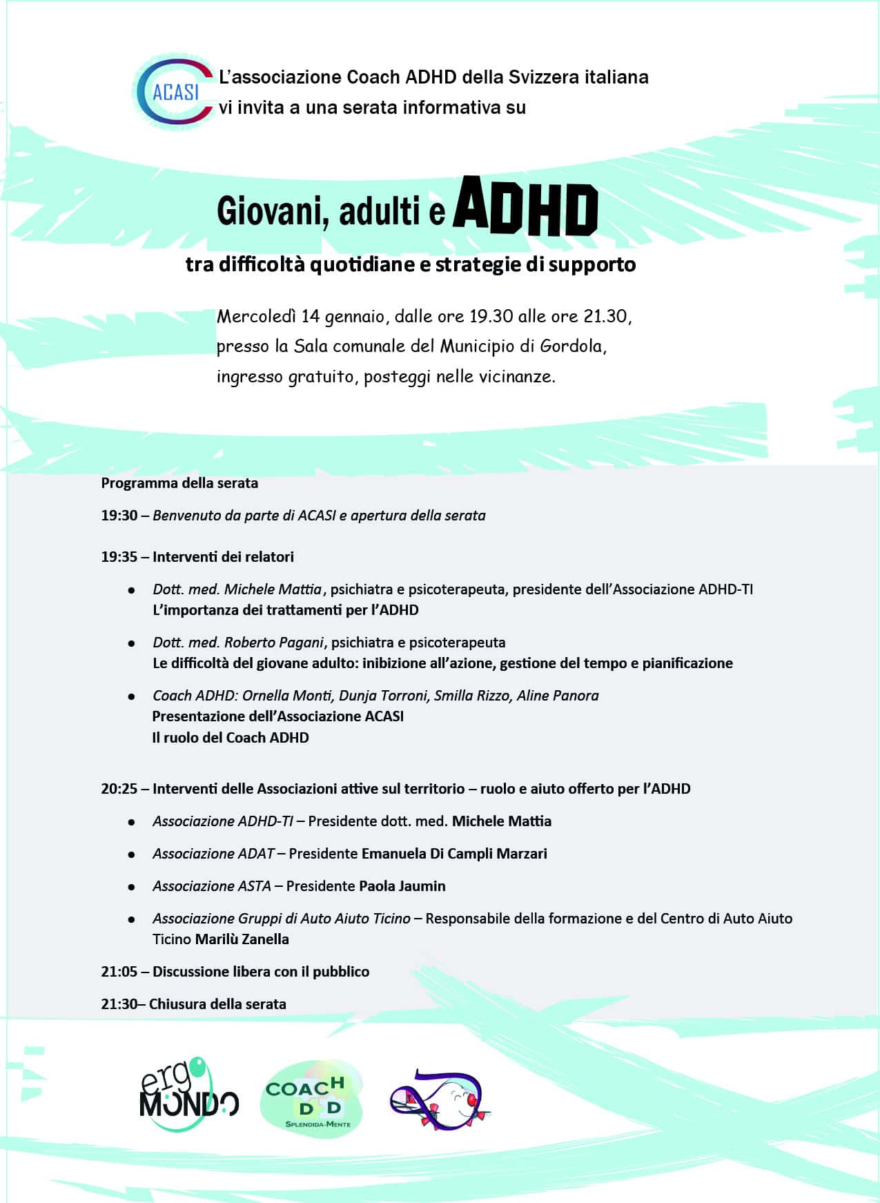 Giovani, adulti e ADHD, presso la Sala comunale del Municipio di Gordola